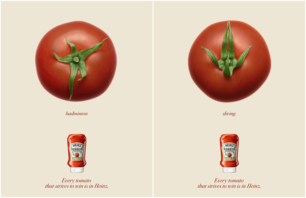 Whether it’s gymnastics, swimming, or table tennis, every “tomato athlete” stands tall with the message — “Every tomato that strives to win is in Heinz.”