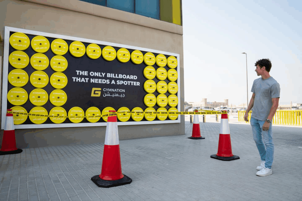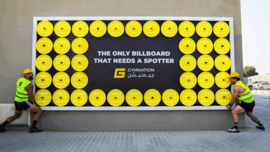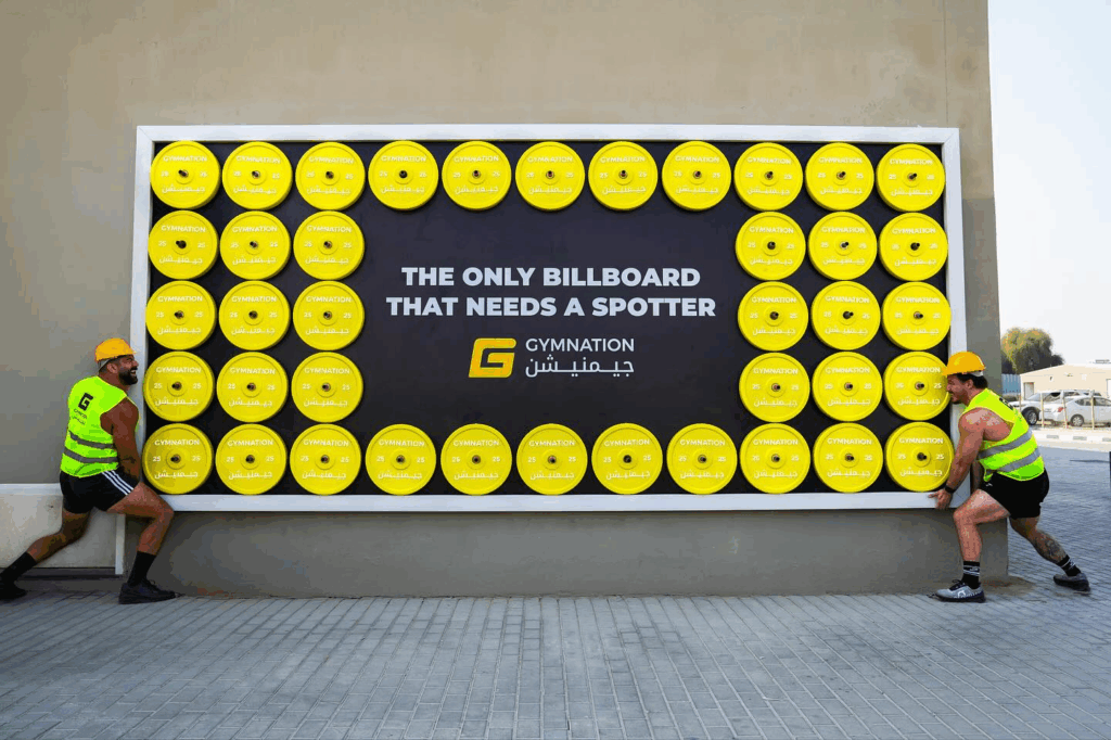 GymNation, the Middle East’s biggest gym chain, has turned heads with a new Dubai billboard that weighs an astonishing one tonne – and yes, that’s heavier than most cars. Made by joining together forty weight plates, this is no ordinary advert.